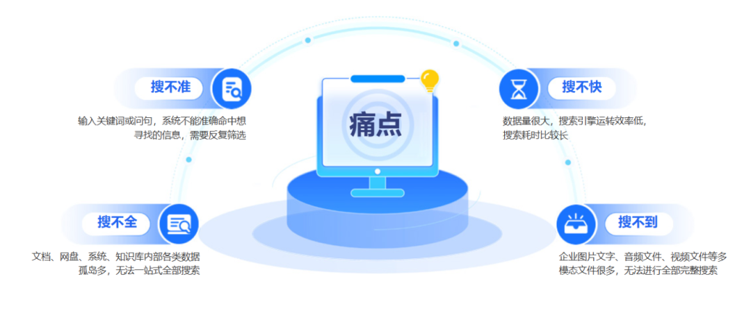 多年来,深蓝海域为银行、政企和国企客户提供专业的智能搜索服务,通过KMPRO平台和个性化解决方案帮助企业打破信息孤岛,实现跨系统的统一检索,让用户找到所需、所想,助力企业构建智能金融服务新生态。