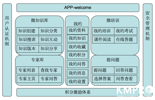 3 通过接口将知识库嵌入到企业已有的APP中,作为一个模块:开放分类 搜索 知识点点评等相应的接口,已经有APP客户进行调用在企业APP中嵌入知识库的模块,实现在一个APP中既访问知识库内容又访问业务内容。