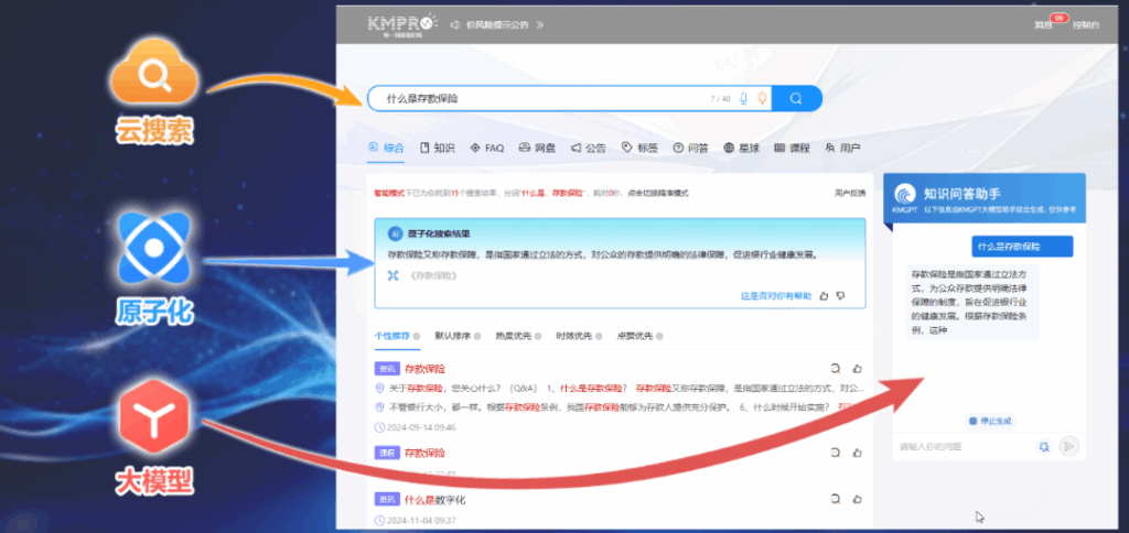 AI智答:集成“大模型首席知识官”,对用户提问生成语义回答,结果可溯源到原始知识片段。