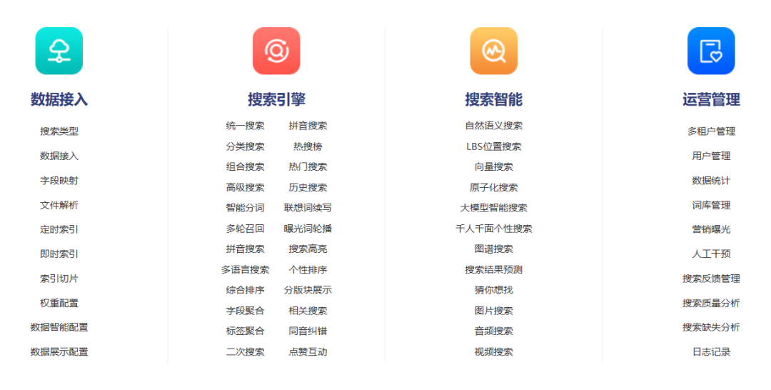 Elasticsearch 是一个开源分布式搜索引擎,广泛应用于日志分析、全文搜索等领域。它基于 Apache Lucene 构建,能够快速处理大规模结构化和非结构化数据。分布式架构,支持海量数据的实时处理和检索。多种查询和聚合功能,满足复杂需求。开源且可高度定制,适应多种企业需求。同样,Elasticsearch也是一个底座,配置与管理复杂,需要技术团队部署与维护。缺乏智能化功能,如语义搜索和自然语言处理。